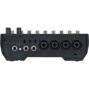 Intrările pentru microfon au alimentare phantom și preamplificatoare de înaltă calitate, cu zgomot redus și o interval larg de gain (+70 dB)