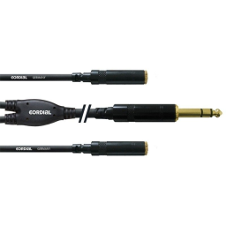 CORDIAL CFY 0.3 VYY cablu stereo. Conectori: jack 6.3 mm stereo - 2 x jack mama 3.5 mm stereo, echipati cu mufe REAN. Lungime: 0.3 m. Culoare: negru.