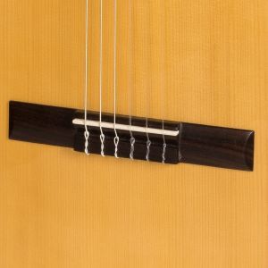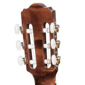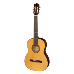 Chitară clasică cu şase corzi din nylon, mărime 4/4, scala 650mm,corp din lemn masiv, faţa din molid, spatele şi eclisa din paltin, gâtul din paltin, limba din palisandru. Finisaj lucios.