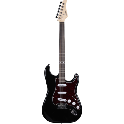 Chitară electrică în stil Stratocaster, cu corp de culoare negru lucios si pickguard în stil Tortoise. Corpul este din plop, în timp ce gâtul din arțar canadian este echipat cu o tastieră din Palisandru, iar cele 3 doze single-coil sunt ideale pentru versatilitate tonală. Chitara are un cutaway asimetric care face să fie ușor și confortabil să ajungi chiar și la cele mai înalte freturi.