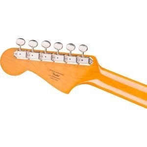 The Classic Vibe '60s Jazzmaster® is a faithful and striking homage to the iconic Fender favorite, producing undeniable Jazzmaster tone courtesy of its dual Fender Designed™ alnico single-coil pickups. Player-friendly features include a slim, comfortable "C"-shaped neck profile with an easy-playing 9.5"-radius fingerboard and narrow-tall frets, a vintage-style tremolo system for expressive string bending effects, and a floating bridge with barrel saddles for solid string stability. This throwback Squier model also features 1960s-inspired headstock markings, rich-looking nickel-plated hardware and a slick vintage-tint gloss neck finish for an old-school vibe.