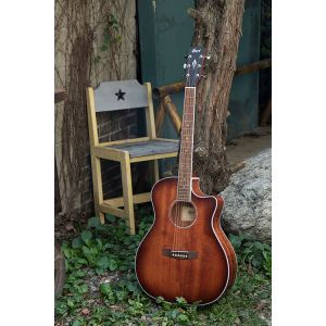 Această chitară electroacustică este perfectă pentru orice gen muzical și vine într-o nuanță elegantă de Brown Sunburst conform producătorului.