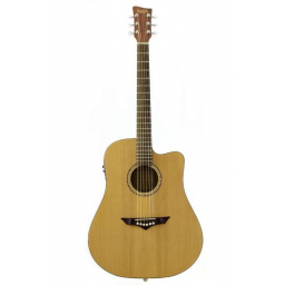 Chitară electro-acustică cu şase corzi din metal, dreadnought, cutaway, scala 650mm, faţa din cedru masiv, spatele şi eclisa din placaj de mahon, gâtul din mahon, limba din palisandru. Finisaj satin. Chitara este echipată cu egalizator grafic Fishman Presys cu tuner încorporat.
