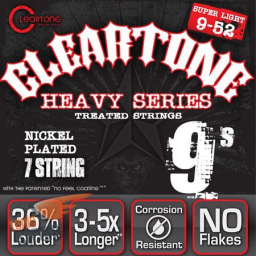 Seria Cleartone Heavy este conceputa, pentru chitaristii profesionisti, de catre Cleartone String, unul dintre cei mai importanti producatori de chitare premium. Structura consolidata, cu greutate redusa si înfasurarea modificata a corzilor fac seria Heavy potrivită pentru testarea limitelor. Datorita tehnologiei brevetate EMP (Enhanced Molecular Protection) Cleartone Strings utilizeaza numai cele mai fine acoperiri cu otel nichelat, de pana la 1 micron grosime, pe un nucleu hexagonal, pentru a asigura o durata de viata lunga fara compromisuri, pastrand aceeasi dinamica naturala, amplitudine si confort ca si corzile netratate.