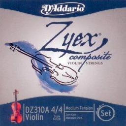 Zyex Composite synthetic core strings produce an extremely warm, rich sound. Zyex is a new generation of synthetic material, creating strings that are extremely stable under drastic climatic conditions. Zyex strings settle in on the instrument very fast, within a matter of hours. Zyex has a warmer sound than most other synthetic core strings, and they have excellent projection. Excellent for use when a dark, rich tone is desired along with powerful projection. Sized to fit 4/4 scale violin with a playing length of 13 inches (328mm), medium tension strings are optimized to the needs of a majority of players. The D string included with the DZ310A set is aluminum wound.