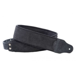 Curea pentru chitară electrică sau acustică și chitară bass, realizată din piele întoarsă cu motiv în relief tip piele de șarpe, partea interioară in microfibră și două straturi de lycra, suport în latex de mare densitate, terminații în piele întoarsă de calitate superioară, sistem de reglare a lungimii RAS, suport interior pentru pene.