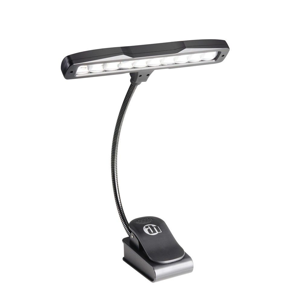 Lampă cu 10 LED-uri, gât flexibil de 22 cm, luminozitate ajustabilă în 2 pași, clemă de prindere cu deschidere până la 20 de mm, este concepută pentru stativele de partituri.