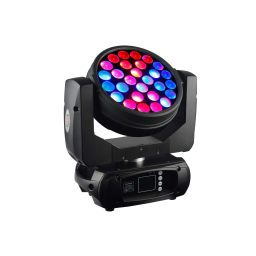 Moving Head tip Moving Par Zoom Wash, echipat cu 28 LED-uri RGBW 4-în-1 de 12W fiecare, control DMX 512 cu 19/35 canale, mișcare Pan/Tilt pe 16 biți, zoom electronic liniar de la 12 la 60 de grade, control pe 4 grupuri de pixeli, temperatură de culoare ajustabilă CTB și CTO între 2800K și 8000K, dimming electronic 0-100%, conexiuni PowerCON in/out, greutate 6 kg.