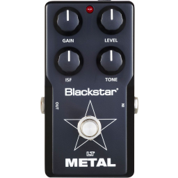 Blackstar LT-Metal, effect pedal for electric guitar, metal high gain distortion, newly developed circuit comes close to the tube sound of the Blackstar HT series pedal, gain level ISF and tone controls, status LED, stable space-saving metal housing, operation with 9V battery or optional power supply (not included).