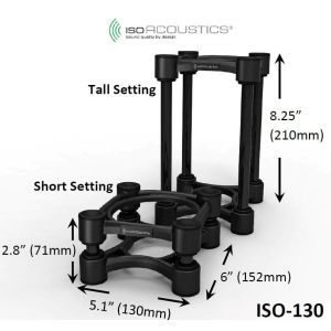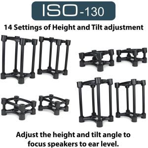 IsoAcoustics ISO-130 sunt stativele de monitoare ce iti vor imbunatati vizibil acuratetea de monitorizare. Primesti un bass mai extins si o imagine mai stereo mai solida de la monitoarele tale de studio, fara sa investesti in monitoare noi. Cum este posibil? Ei bine, IsoAcoustics a creat seria ISO-130 conform standardelor PIF (Plasament, Izolare, focalizare), principii importante in design-ul acustic. Rezultatele sunt vizibile imediat si sunt de altfel dramatice. Plasate pe stativele ISO-130, decuplate de la suprafetele de suport, cu reflexii minimizate din partea suprafetelor din jur si focalizate cum trebuie. monitoarele tale te vor impresiona cu o acuratete pe care nu credeai ca o au. IsoAcoustic a imbunatatit ISO-130 in comparatie cu modelele anterioare cu un design low-profile si cu izolatori noi.
