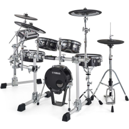 Yamaha DTX10K-M Black Forest - Seria DTX10 este flagship-ul seriei DTX, combinând funcționalitatea tobei electronice cu frumusețea pură a seturilor acustice. Reproduce cu fidelitate sunete reale de tobe și ambianță în cameră reală înregistrate în studio-uri de renume mondial din întreaga lume. Vine echipat cu fețe Remo cu 2 straturi care oferă un nivel de durabilitate ridicat, o reducere mare a zgomotului și un ”feel” asemănător cu cel regăsit la tobele acustice. Cinelul Ride este echipat cu o funcție inteligentă de detectare a punctelor de lovire iar shell-urile sunt fabricate din lemn de mesteacăn la fabricile Yamaha specializate în confecționarea seturilor de tobe acustice.