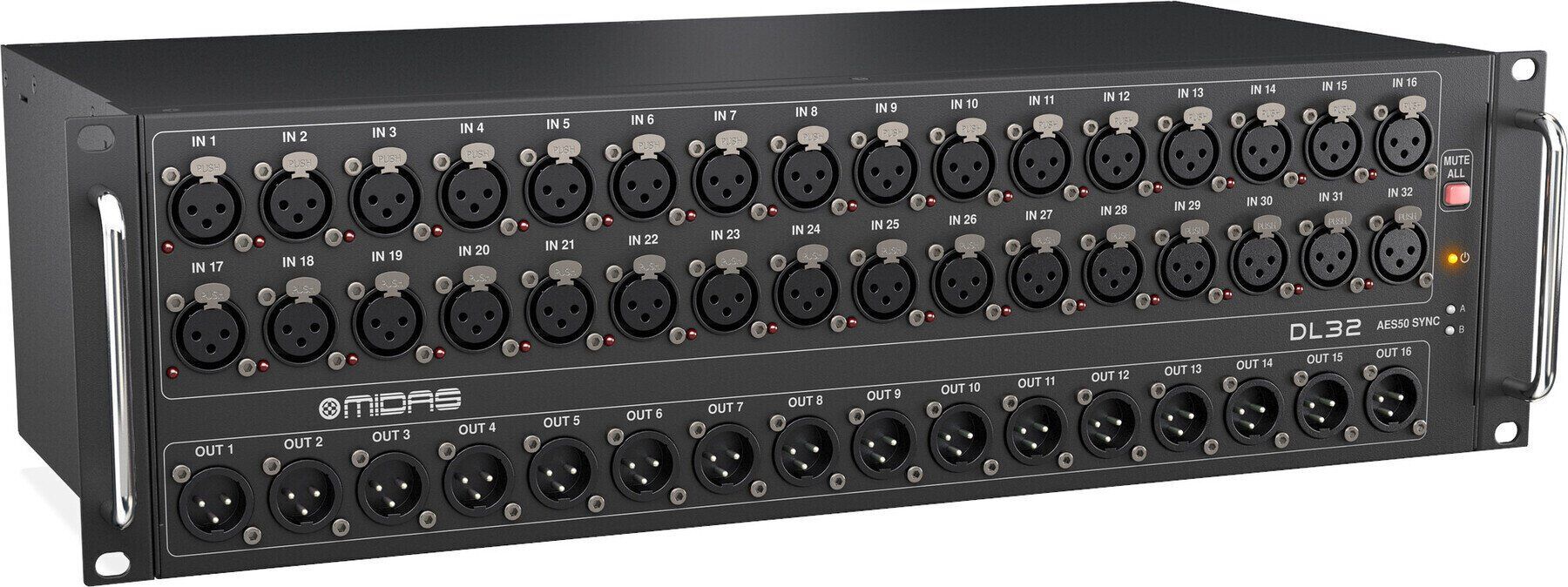 Midas DL32 este un stagebox digital ce include 32 intrari cu preamplificatoare de microfon Midas, precum si 16 iesiri. Stage box-ul este compatibil cu interfetele ULTRANET si ADAT. Stagebox-ul permite utilizarea cablurilor CAT-5E cu lungimea de pana la 100 metri si poate fi montat cu usurinta intr-un rack de 19 inch.